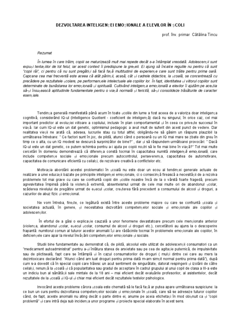 Dezvoltarea Inteligentei Emotionale A Elevilor In Scoli