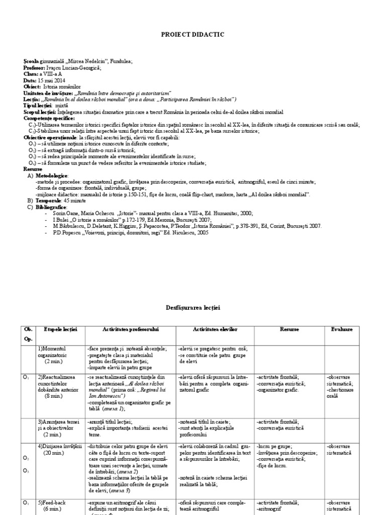 Lectie Romania In Al Doilea Război Mondial