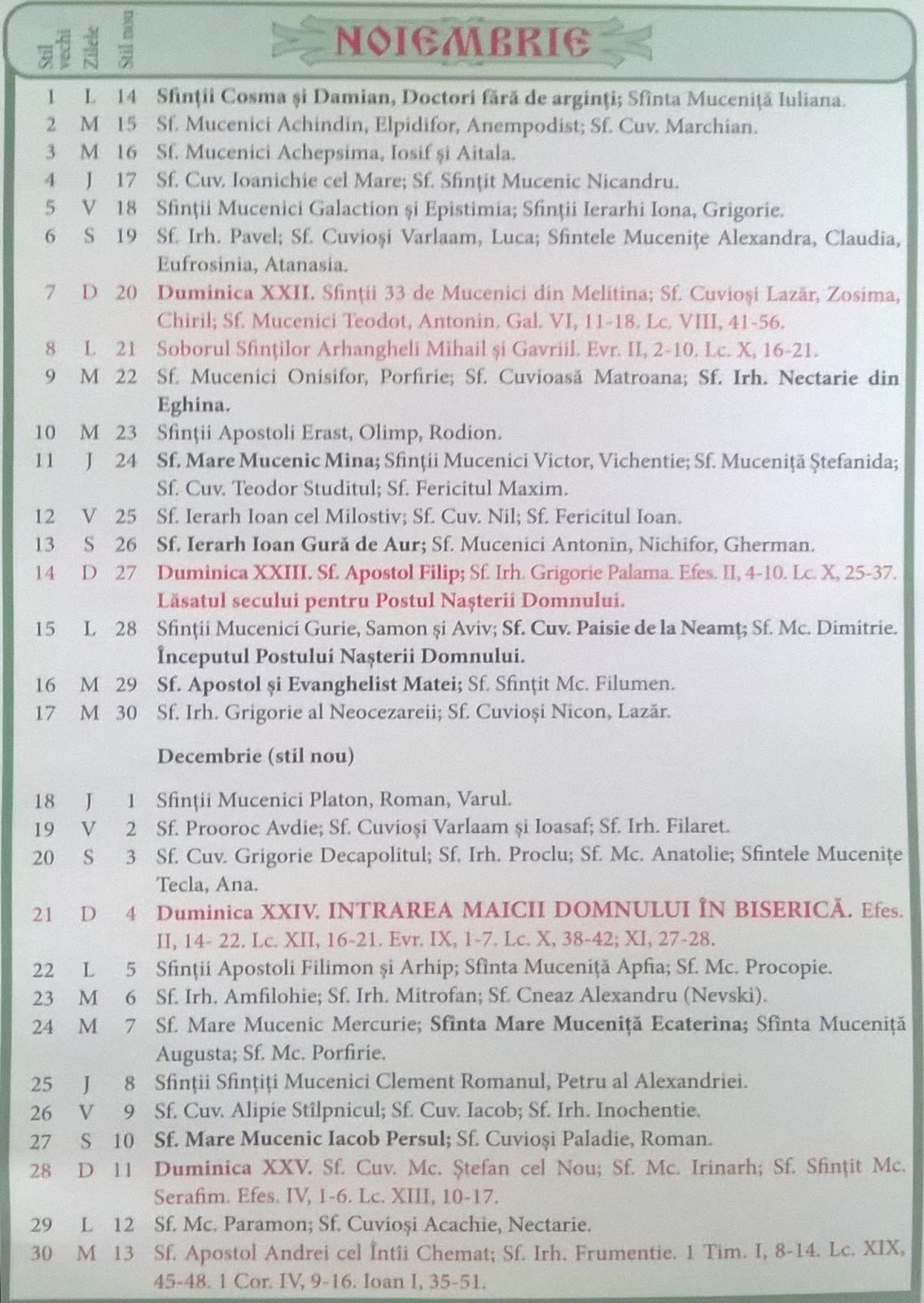 Noiembrie 2016 Calendar Ortodox 2020