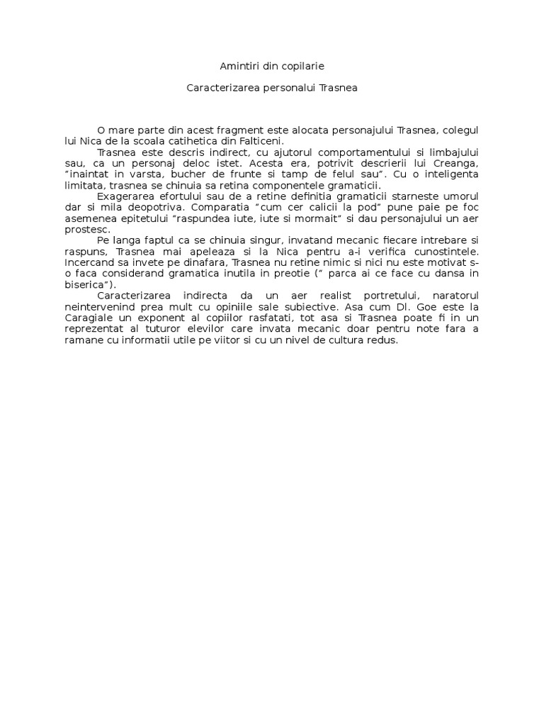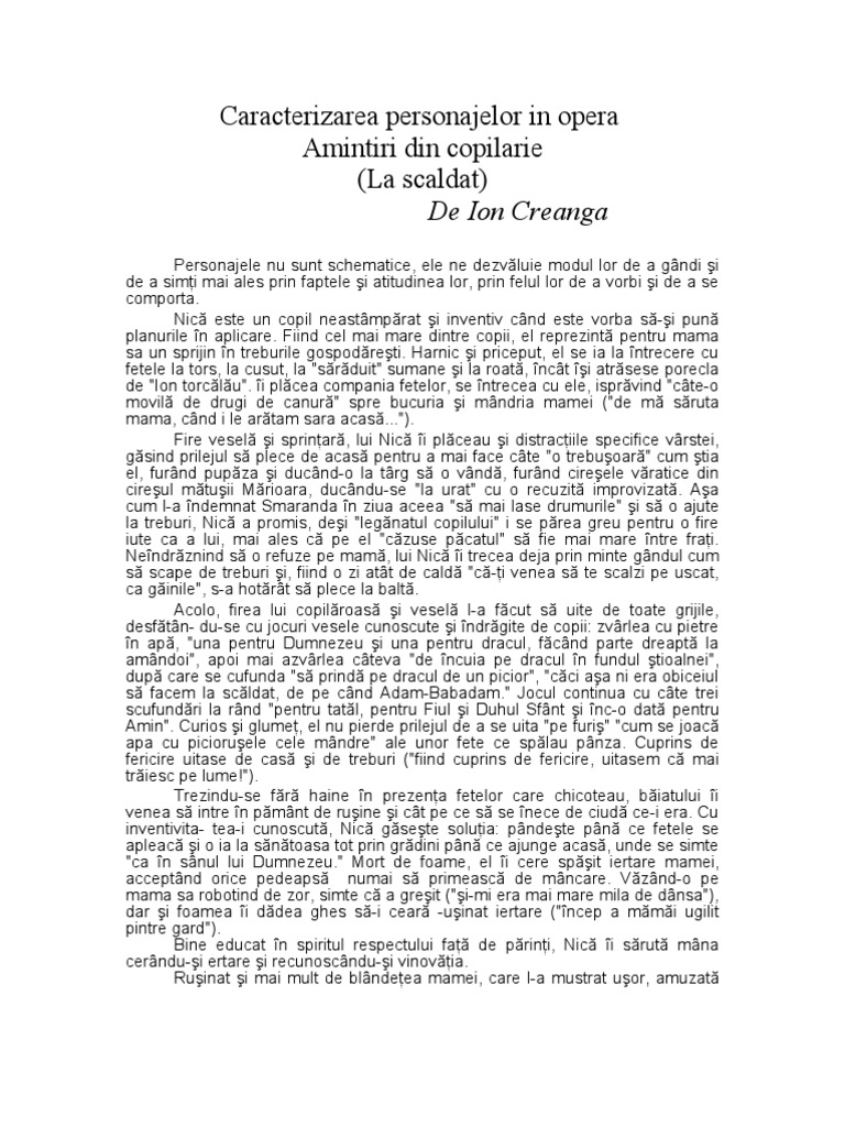 Doc Amintiri Din Copilarie Caracterizarea Lui Nica Pe Toata Opera Izabela Maria Academia Edu