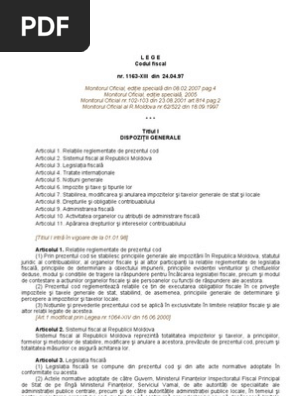 Codul Fiscal Al Republicii Moldova Modificari 2010