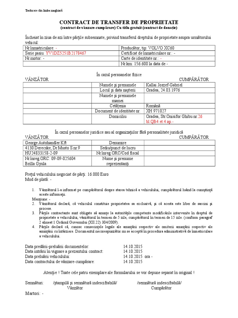 Contract Vanzare Cumparare Pentru Un Vehicul Folosit Pdf