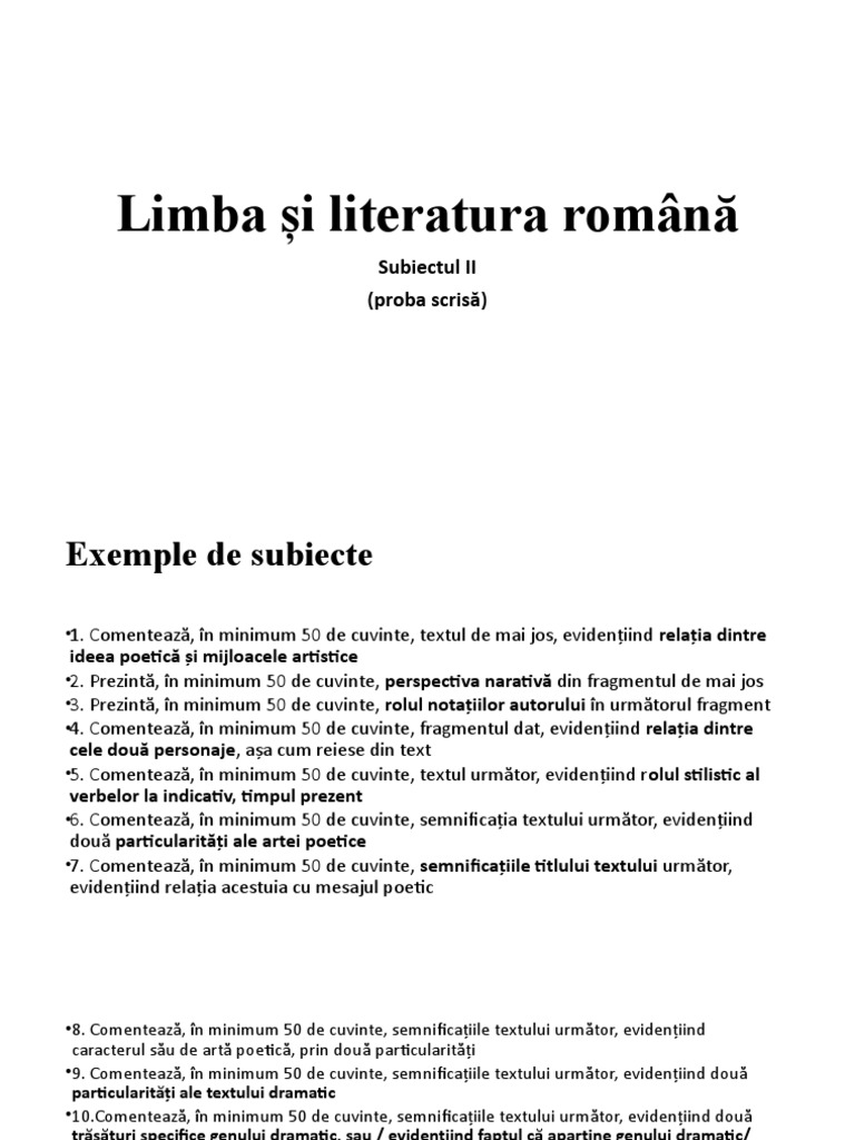 Subiectul Al Ii Lea Tot Ce Trebuie Sa Stii Scri La Subiectul Al Ii Lea Din Cadrul Probei Scrise La Limba Si Literatura Romana A Examenului De Bacalaureat Bacalaureat