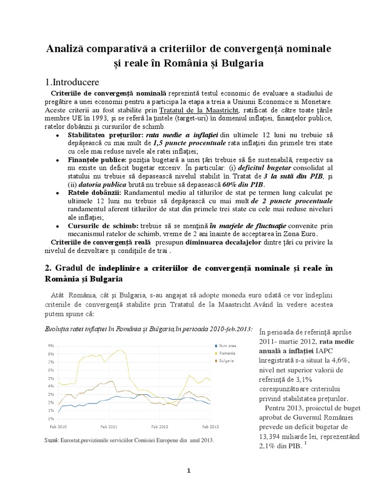 Criteriile De Convergenta Nominala Si Reala Romania Si Bulgaria