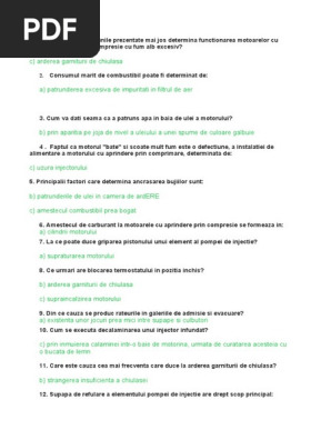 Care Din Defectiunile Prezentate Mai Jos Determina Functionarea Motoarelor Cu Aprindere Prin Compresie Cu Fum Alb Excesiv