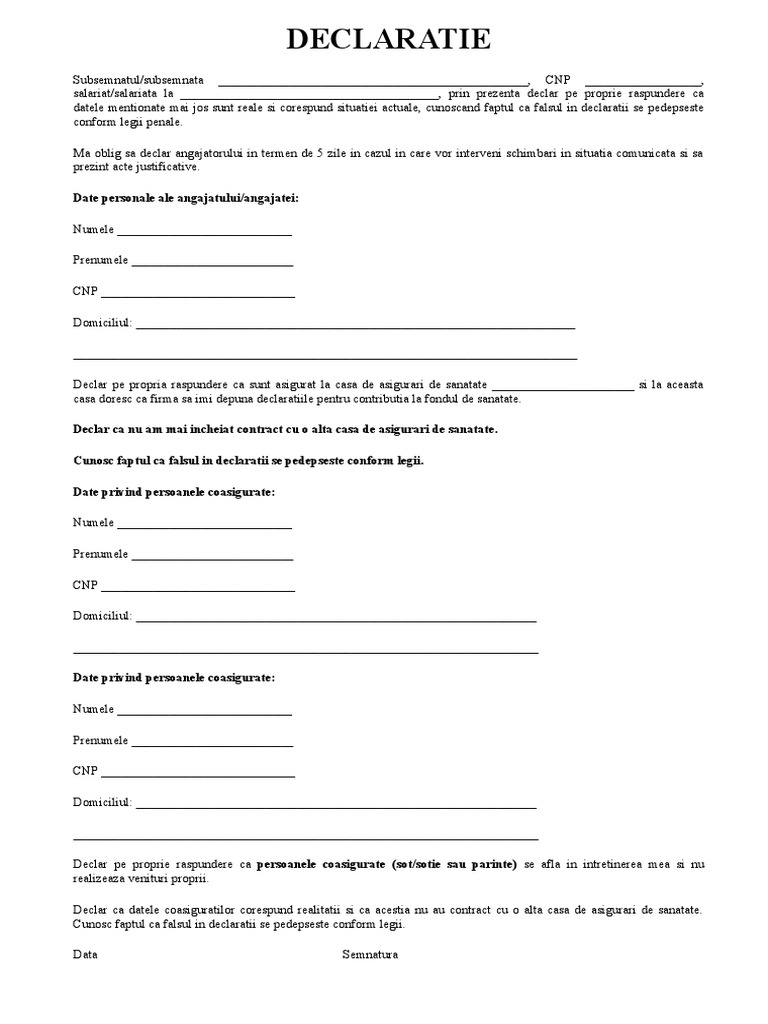 Declaratie Pe Propria Raspundere Coasigurat