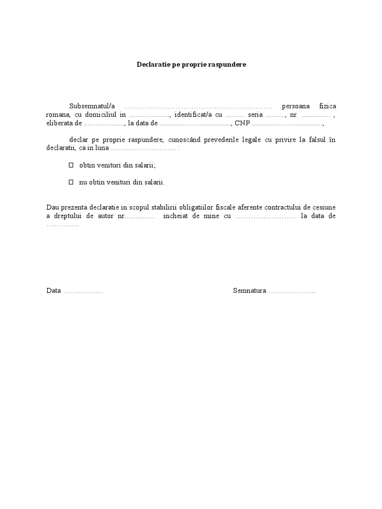 Declaratie Pe Proprie Raspundere Drepturi Autor 2018 1