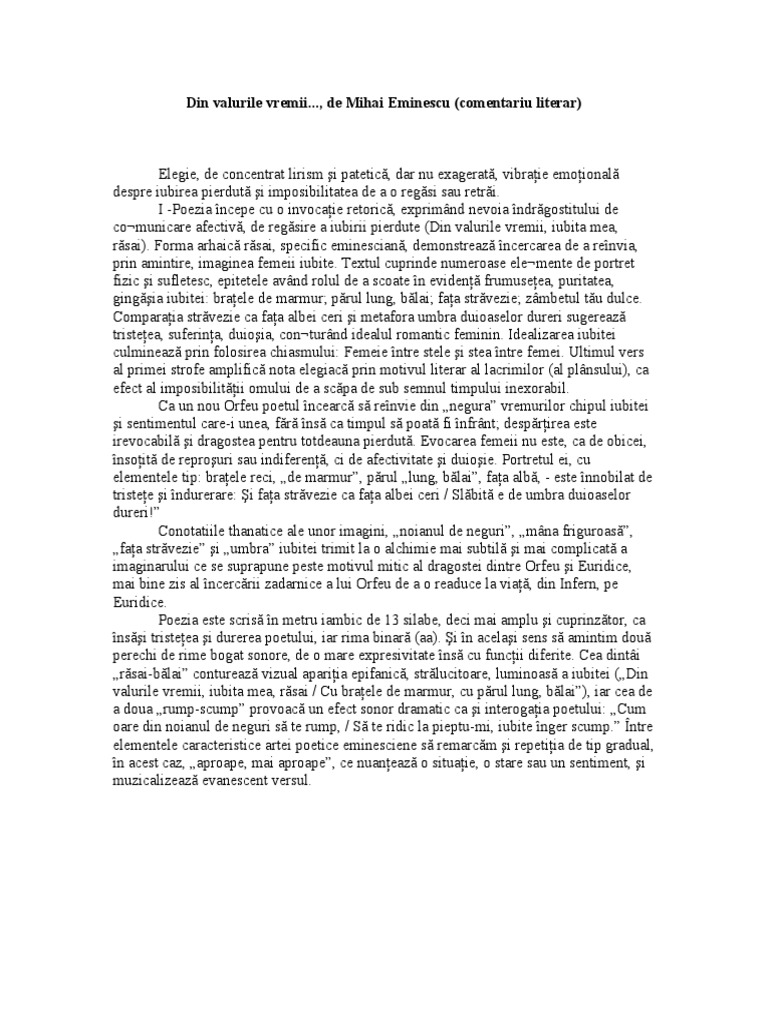 Comentariul Poeziei Singuratate De Mihai Eminescu Pdf