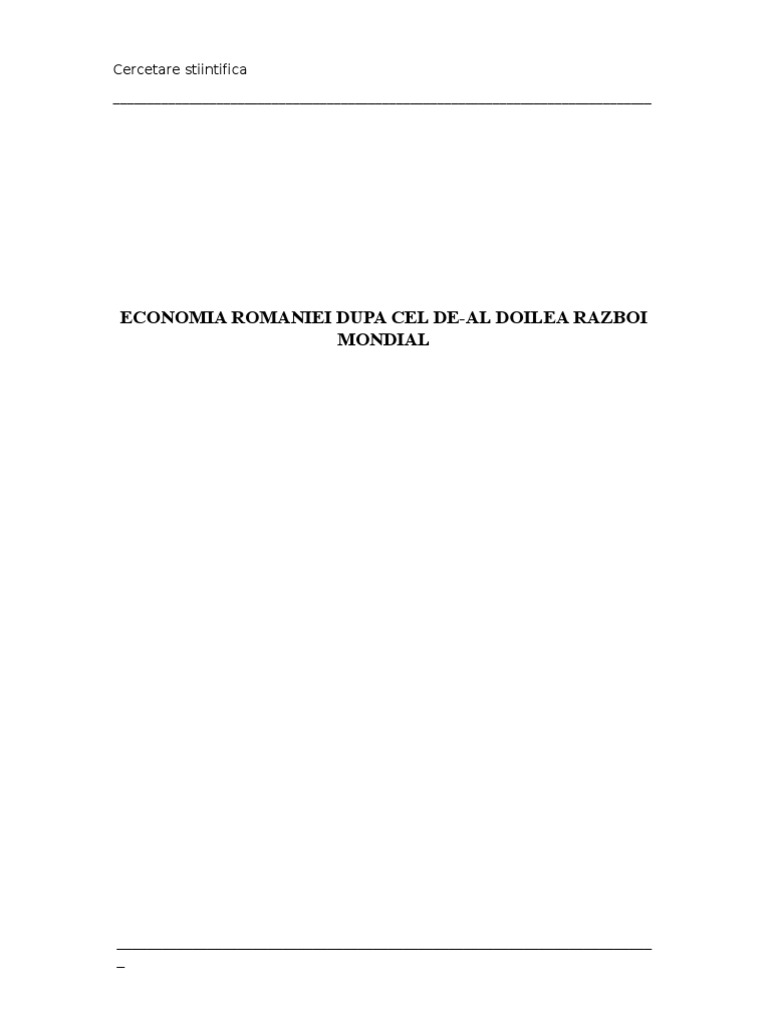 Economia Romaniei In Perioada Postbelica