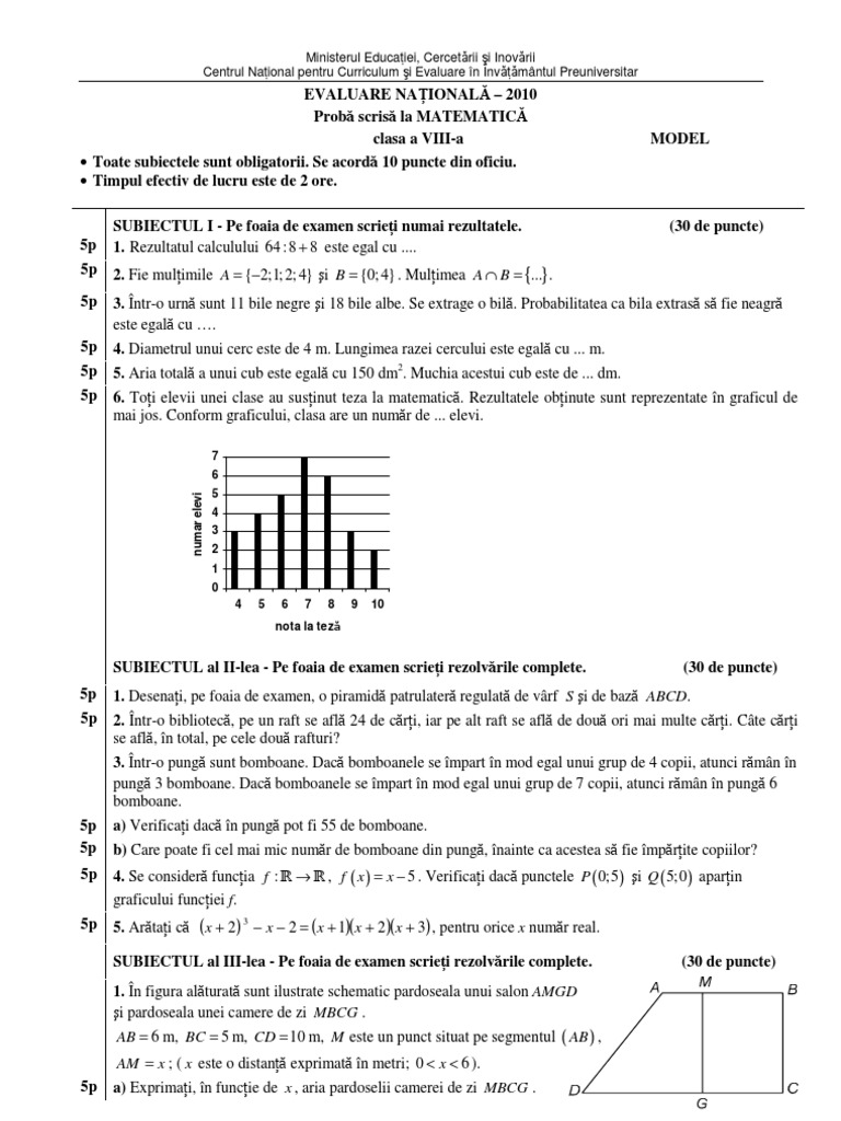 7 Evaluare Nationala Matematica Cu Barem 2009 2010