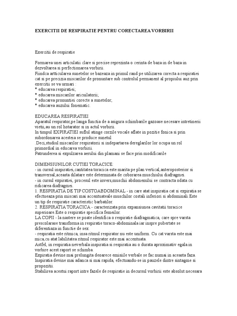 Exercitii De Respiratie Pentru Corectarea Vorbirii