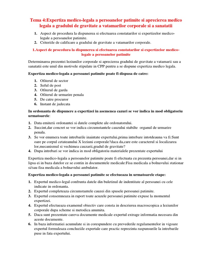 Tema 4 Expertiza Medico Legala A Persoanelor Patimite Si Aprecierea Medico Legala A Gradului De Gravitate A Vatamarilor Corporale Si A Sanatatii