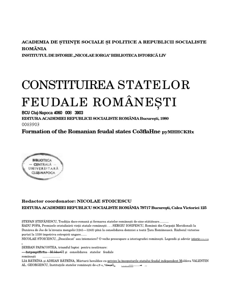 Constituirea Statelor Feudale Romanesti Pdf